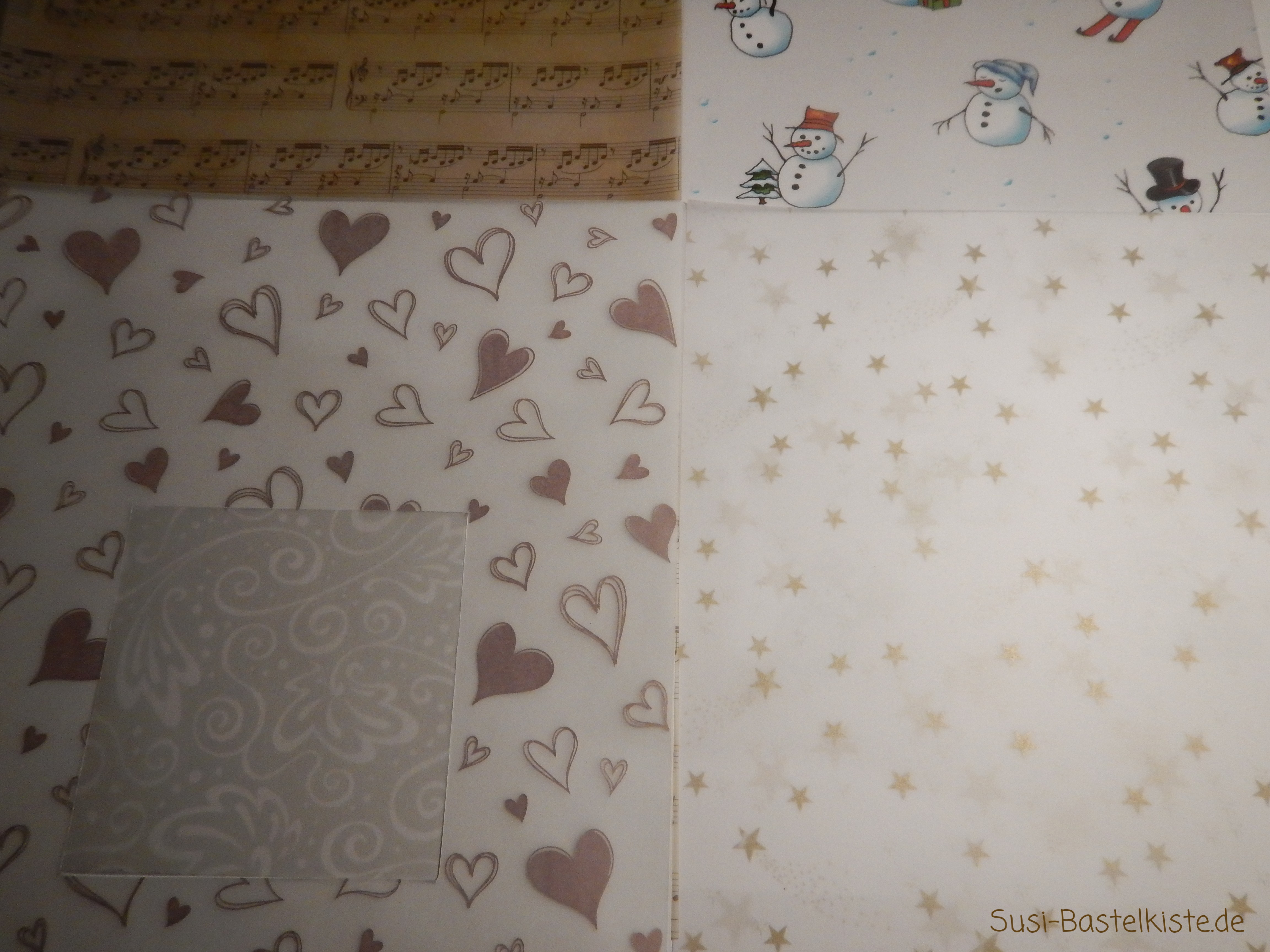 Transparentpapier ist ein leicht durchsichtiges Papier. Es eignet sich sehr gut als Hintergrund für Layouts, für Fensterbilder und auch zum Basteln von Karten. Wie zum Beispiel hier: Karte Notenschlüssel