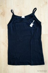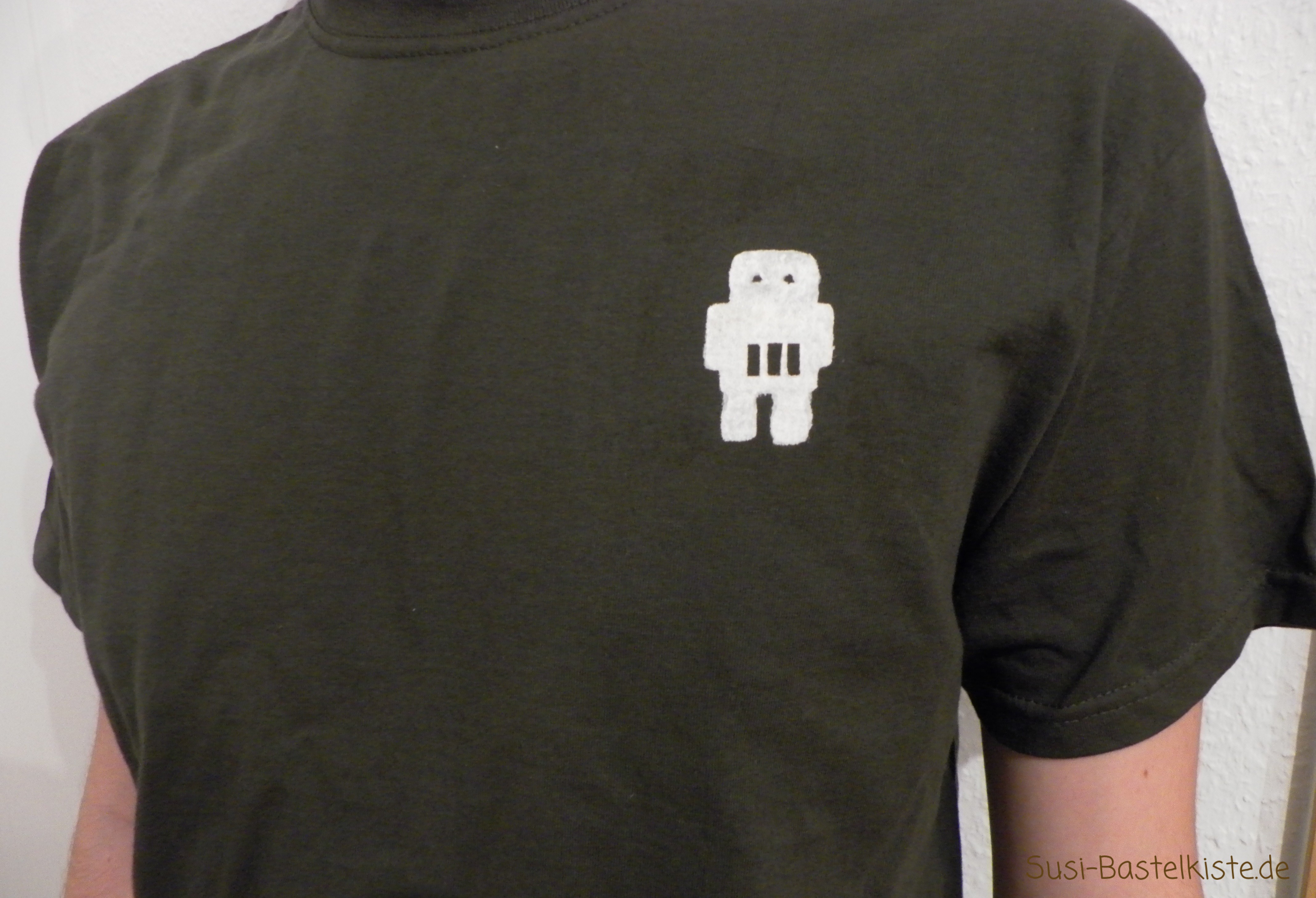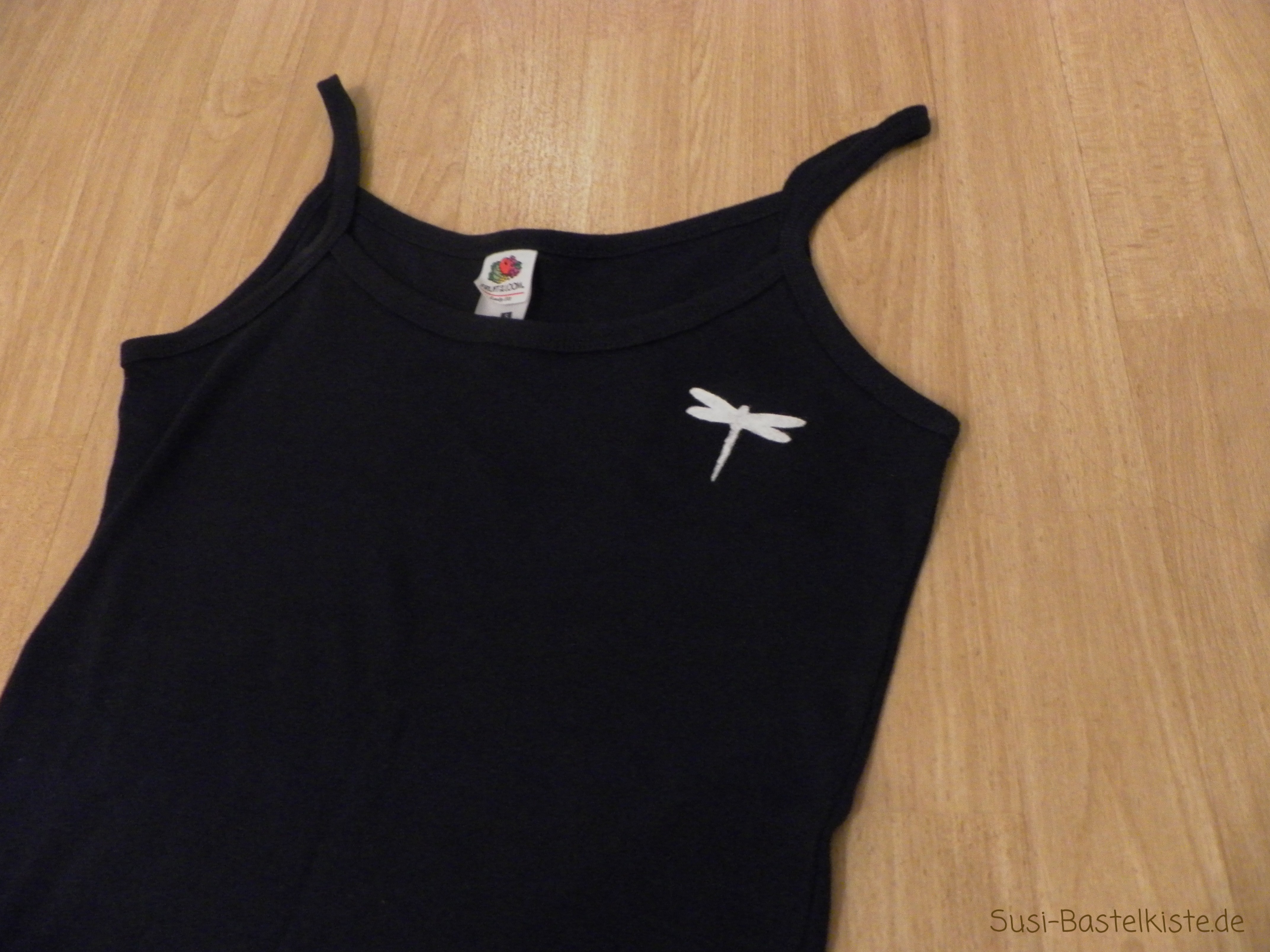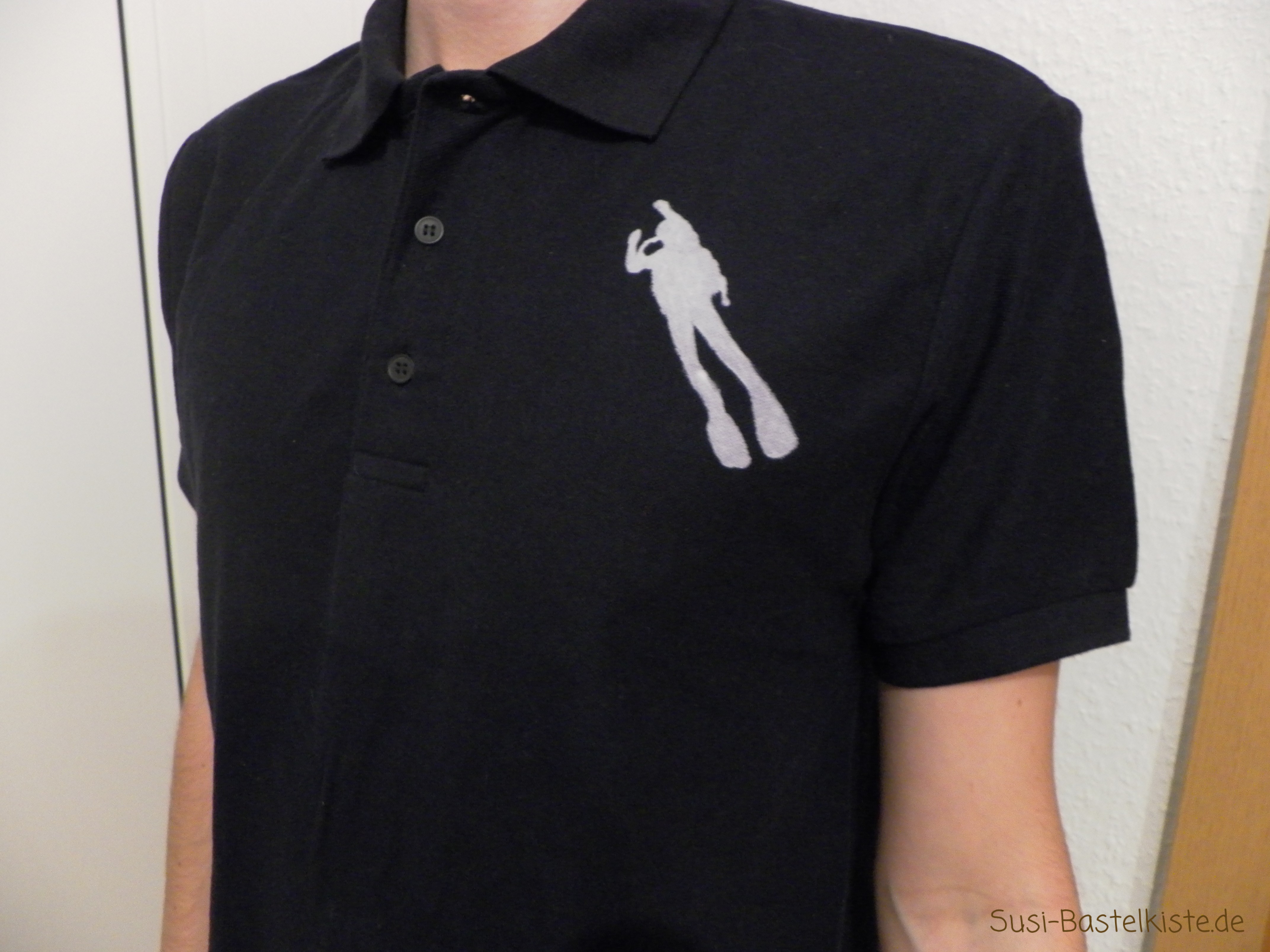 - Befestigen der Schablone auf dem Shirt mit Haftkleber.