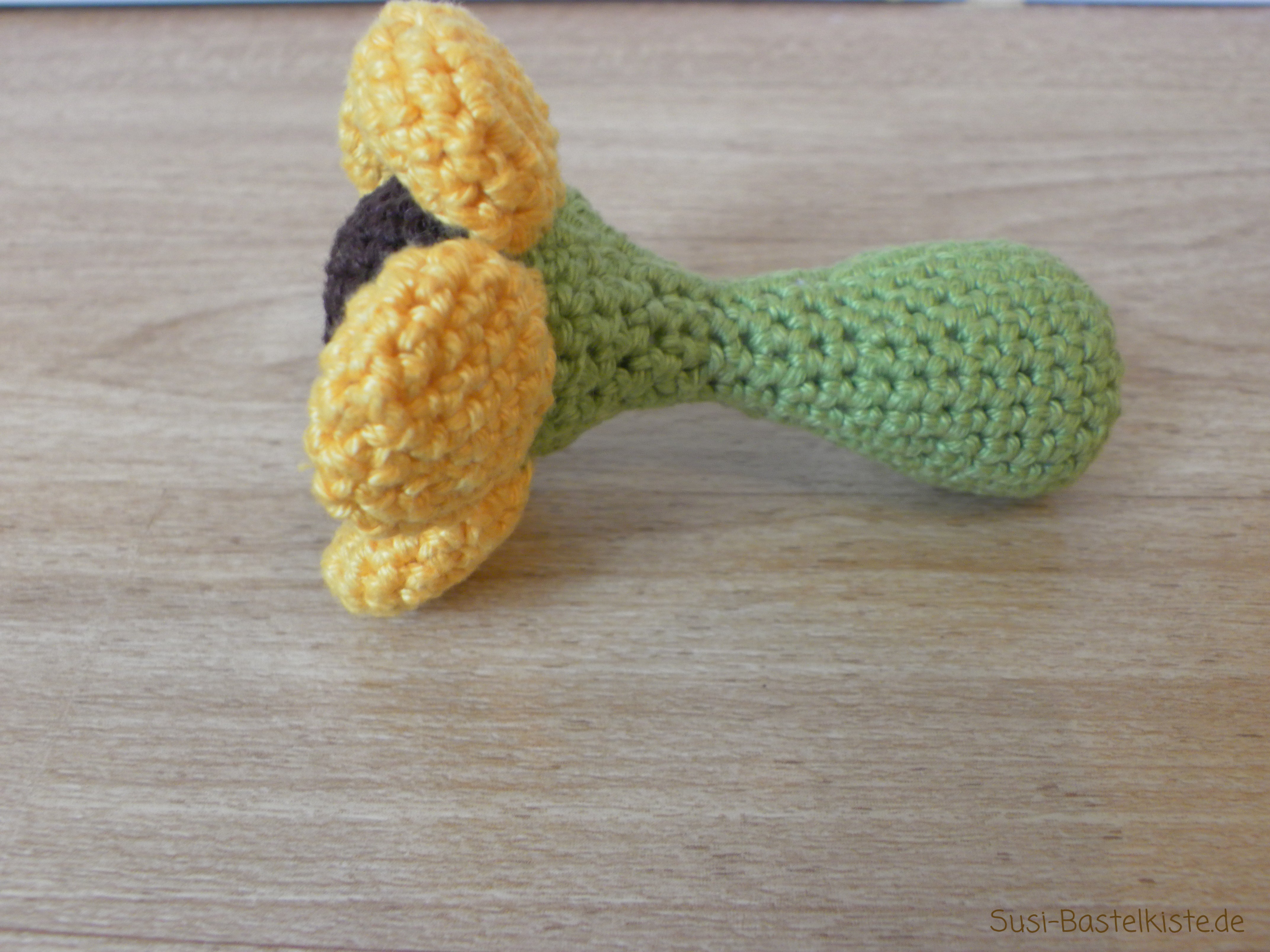 In letzten letzten Tagen habe ich nach der Arbeit mal wieder etwas Zeit zum Häkeln gehabt. Und nachdem ich ein bisschen bei Pinterest gestöbert habe, habe ich eine tolle Anleitung entdeckt, die Vorbild meiner gehäkelten Sonnenblumen-Rassel ist. Die Rassel ist ca. 8 - 8,5 cm groß und ist das perfekte Geschenk zur Geburt oder zum Kindergeburtstag. 🙂