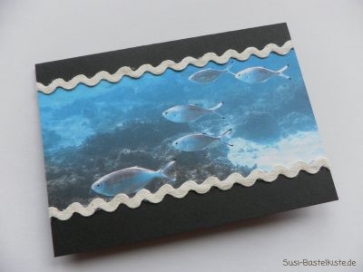 Hier habe ich auch noch den passenden Umschlag für diese Karte gestaltet: Karte Fische